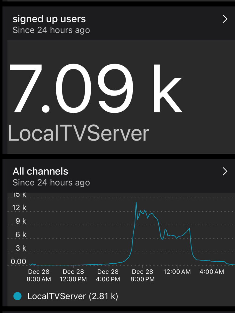 I was traveling in Europe the past couple of weeks. Early on in my travels we experienced a power related hardware failure on our oldest server. The old 2012 Dell desktop that powers most of the service. Thankfully, it was resolved quickly and we have a replacement ready to go for the new year. We had a very brief moment of downtime and I was looking forward to an uneventful end of the year. Unbeknownst to me, the Verizon – Cox dispute was ongoing and it interfered with the ability of people to watch Patriots games on Fox in Boston. Around Dec 27th we were covered in Boston.com . This appears to be the origin of the viral growth. In the 24 hours since this was posted, around 7k people signed up for the service and watched the Patriots game on Fox. In total there were just around 15k users streaming the game on game day.
